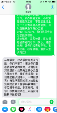 社会工作学科获得硕士学位授予权后,非常高兴,祝你们以优异成绩在三年后获得顺利评估验收!”这是罗光化老师回复的短信,也是所有离退休老师的心声,虽然已经不在工作岗位,但是仍一如既往地关心支持学校的改革与发展,因为心中有个共同的梦想——共同实现美好的大学梦!