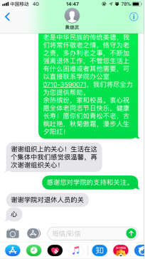 用短信、电话形式慰问了11位离退休老教师。通过短信和电话,向各位老同志致以最亲切的问候和最美好的祝愿;向各位老同志对学校的关心、支持和贡献,致以诚挚感谢和崇高敬意;衷心祝愿全体老同志节日快乐,健康长寿!并郑重承诺,不管老同志在生活还是其他方面有困难,都可以联系麻豆tv