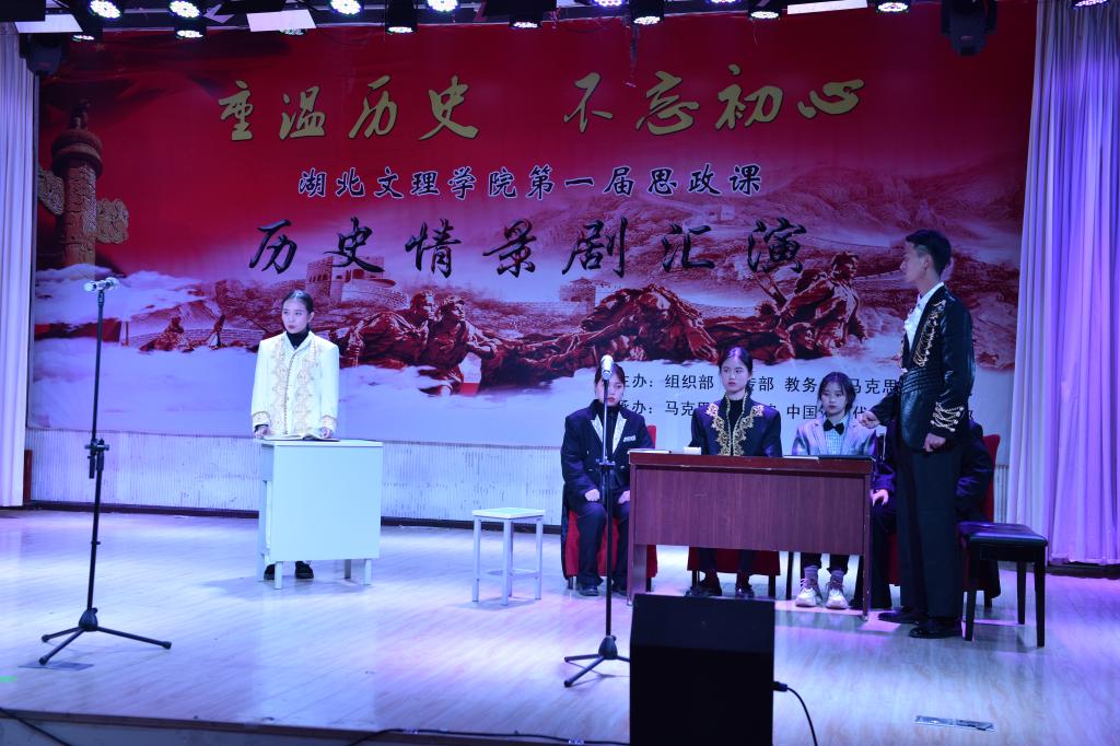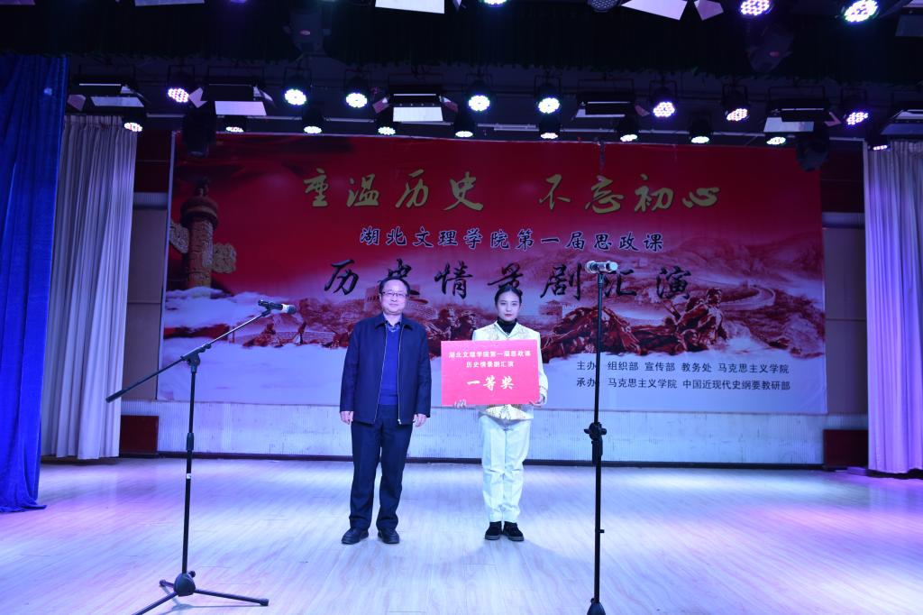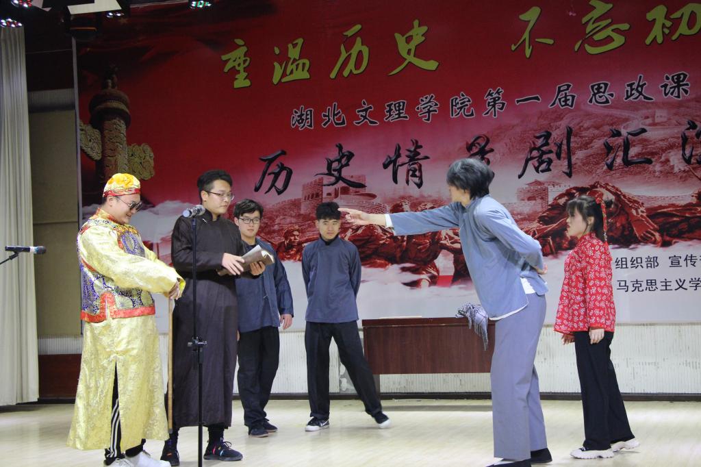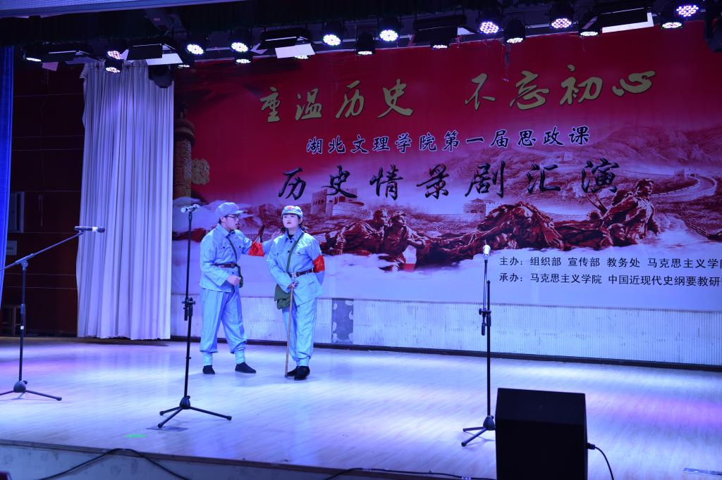 复选,从最初的近400个历史情景剧作品中选出8个作品参加汇演,它们分别是:《虎门销烟》、《巴黎和会》、《五四运动》、《倔强的小红军》、《长征组歌》、《西安事变》、《刘胡兰》、《白毛女》等。舞台上,学生演员们用精彩的表演重现了中国近现代史上发生的历史事件,塑造了栩栩如生的历史人物形象,表现了民族危亡时刻中国人民坚强不屈的斗争精神,表达了新时代大学生不忘历史、奋发有为的坚定决心。最终,广编1811班《巴黎和会》剧组荣获一等奖,音乐学1811《白毛女》剧组、建筑学1811《长征组歌》剧组、广编1813《五四运动》剧组荣获二等奖,法学1812《西安事变》剧组、音乐学1811《倔强的小红军》剧组、物流1811《刘胡兰》剧组、英语1814《虎门销烟》剧组荣获三等奖。