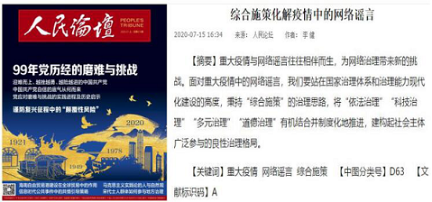 青年教师李健博士所撰写、助力疫情防控的理论研究文章《综合施策化解疫情中的网络谣言》,被人民日报出版社主办的CSSCI期刊《人民论坛》全文刊发。