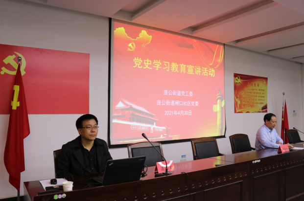 副教授高其文为庞公街道机关全体党员、村(社区)以及四季青公司党支部成员、闸口社区老党员和“双报到”党员作了一场生动新颖党史宣讲。