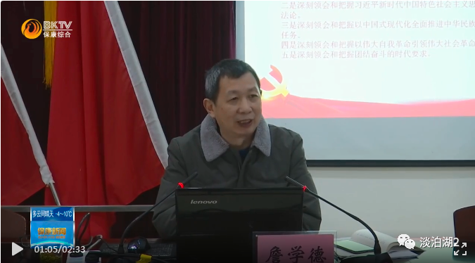 詹学德教授到保康县寺坪镇为干部群众宣讲党的二十大精神。詹学德讲授了过去五年工作的重大成就、新时代十年伟大变革的背景、新时代十年的三件大事和三个历史性胜利,激励基层干部群众凝聚共识、汇聚力量、担当作为。
