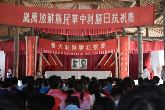 驻足王家坪革命旧址前,迎面便是中央军委礼堂,礼堂复原了1945年8月15日在此举行庆祝抗日战争胜利大会的场景,在这里实践团队共同聆听了《毛泽东与毛岸英父子的家风故事》,讲解员富有历史沉淀感的声音和饱含丰富感情的讲解让团队成员对于毛泽东伟人的胸怀和大爱感触颇深,“抱病迎接毛岸英”、“不搞特殊化”、“丧子后泪流满面”、“不接回岸英遗体”、“多次搬家仍珍藏的一件件岸英的衣服”等等,队员们在一个个动人的故事中切身感受伟人胸怀和家国大爱。