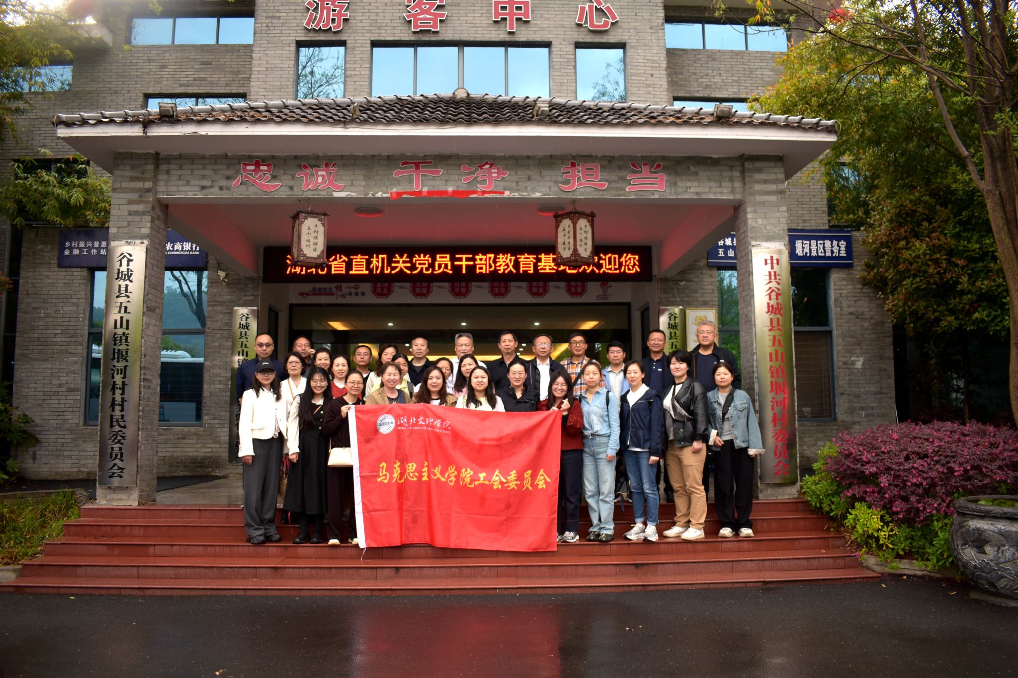 全体教职工赴谷城县堰河村开展“大思政课”实践基地挂牌暨思政课教师实践研学活动。全国人大代表、荆楚楷模、堰河村党委书记兼村委会主任闵洪艳代表全体村民对麻豆tv