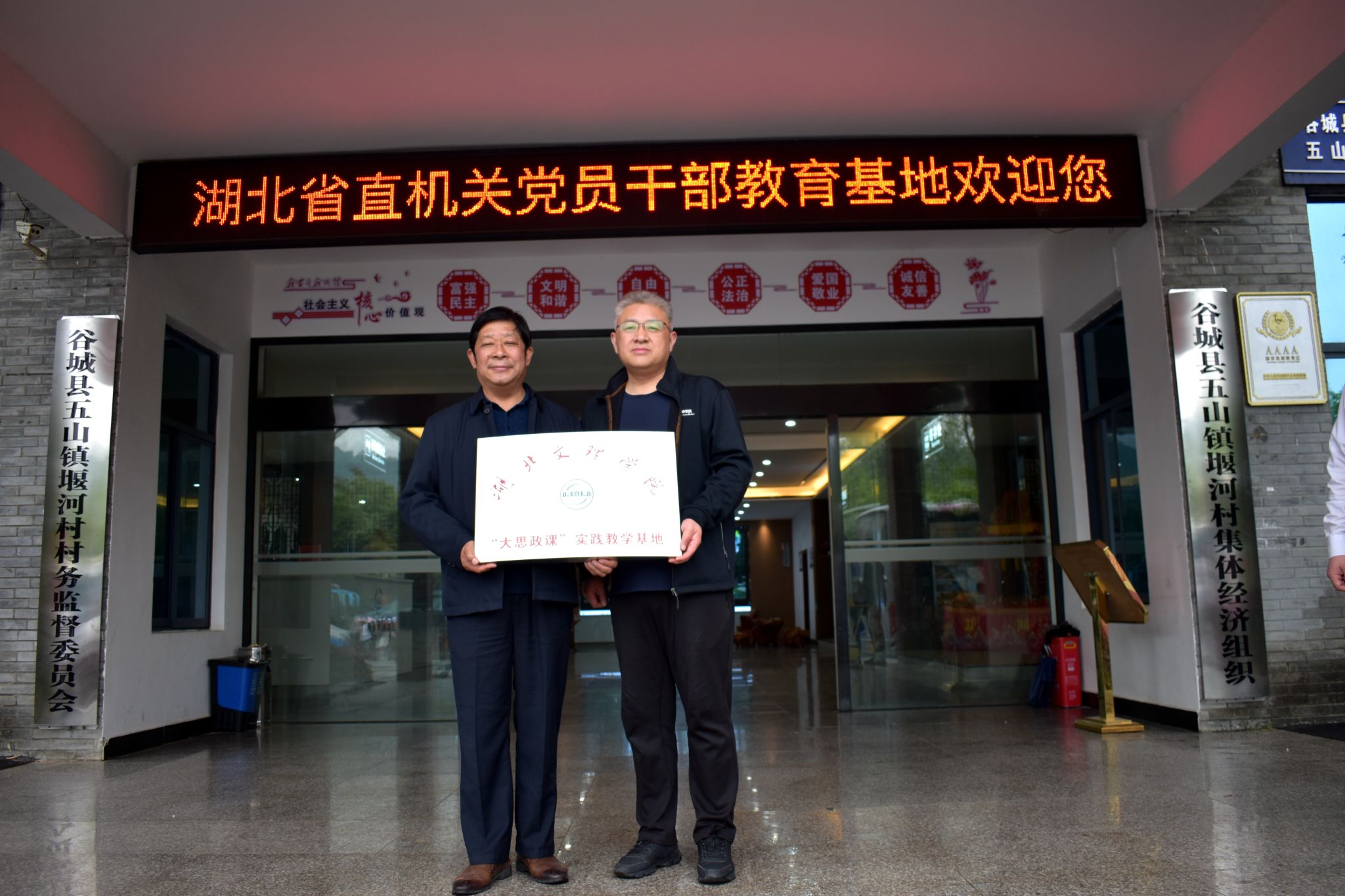 领导班子同闵洪艳书记开展了富有成效的会谈,双方在基层党组织建设、乡村文化建设、思政课师生研学等多方面达成了合作意向,共同签署了合作协议并举行了“大思政课”实践基地挂牌仪式。此次活动中,全体教职工以“咬定青山、艰苦创业、务实担当、敢闯敢干、小车不倒往前推”为主题开展了堰河精神微党课学习,并参观调研了村史馆、村人民大会堂、茶叶园、酿酒坊、咖啡馆、农家乐、垃圾分类中心等场所,亲身感受到乡村振兴战略实施以来的显著成效,极大加深了对社会主义生态文明和“绿水青山就是金山银山”的理论认识。