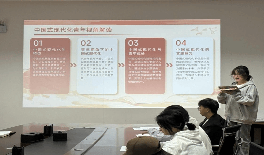 十一位学生主讲人围绕《习近平谈治国理政》第五卷专题一“以中国式现代化全面推进中华民族伟大复兴”的研读心得进行展示汇报。