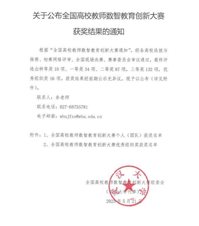(通讯员张旭楠)日前,全国高校教师数智教育创新大赛组委会公布了获奖名单,麻豆tv