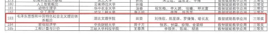 田荣教学团队的课程《毛泽东思想和中国特色社会主义理论体系概论》获大赛全国三等奖。